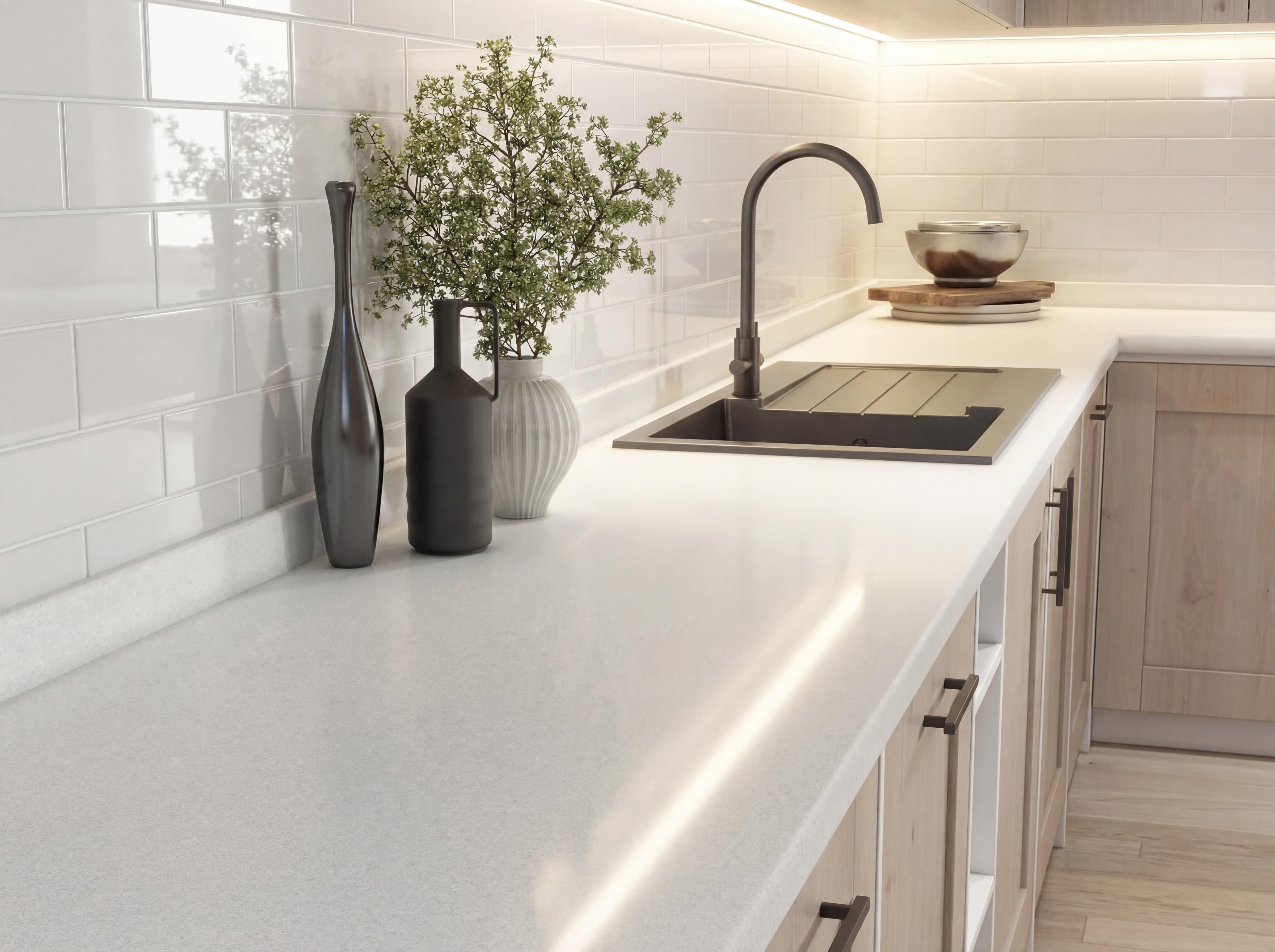 Engineered quartz worktops templated, supplied, and installed throughout London.