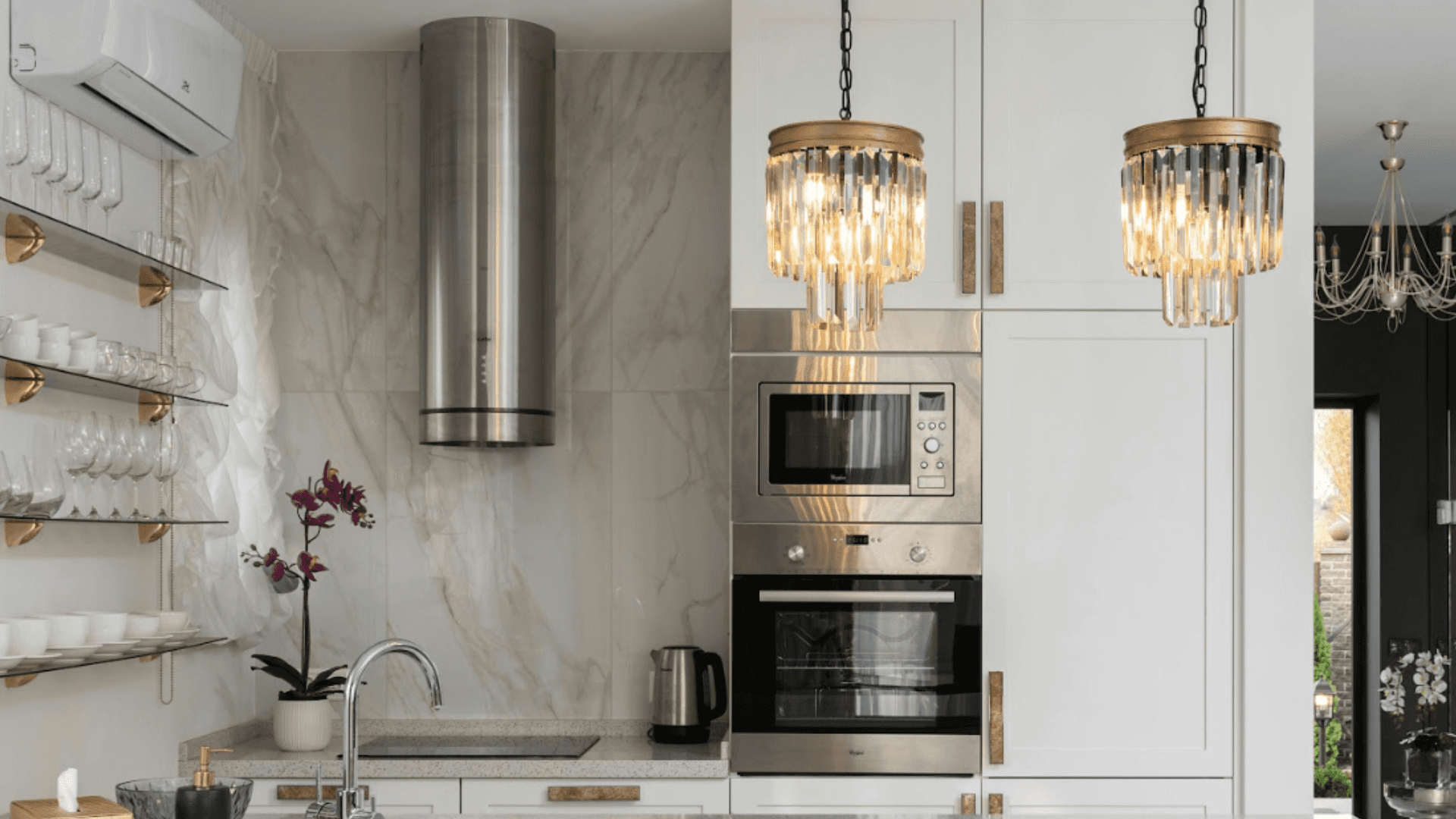 Accent is where the modern character lives: thin LED profiles in plinths, shelves and finger pulls that skim stone and timber after dark.